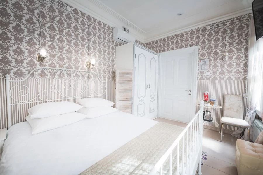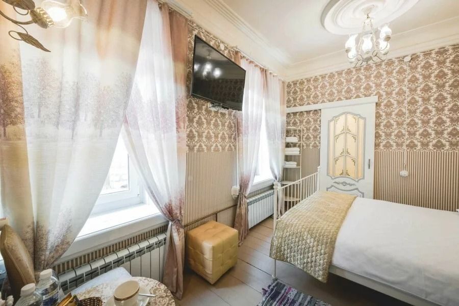 Уютный двухместный номер в стиле Прованс. Светлые нежные оттенки в комнате создает расслабляющую и романтичную атмосферу. Плавные линии элементов декора и воздушная драпировка штор добавляют легкости пространству, а бронзовая фурнитура в сочетании с деревом вносят элегантность и теплоту. Пол в номере изготовлен из массивных досок сибирской сосны.