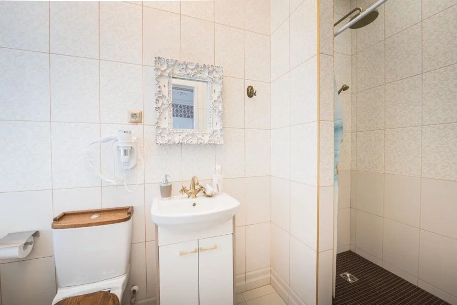 В номере есть все необходимое для комфортного проживания: широкая кровать с матрасом повышенной комфортности, 4 подушки, прикроватная тумба, большой и удобный шкаф, телевизор, столик для чаепития, чайник, холодильник, светлая и просторная ванная комната с феном и принадлежностями.